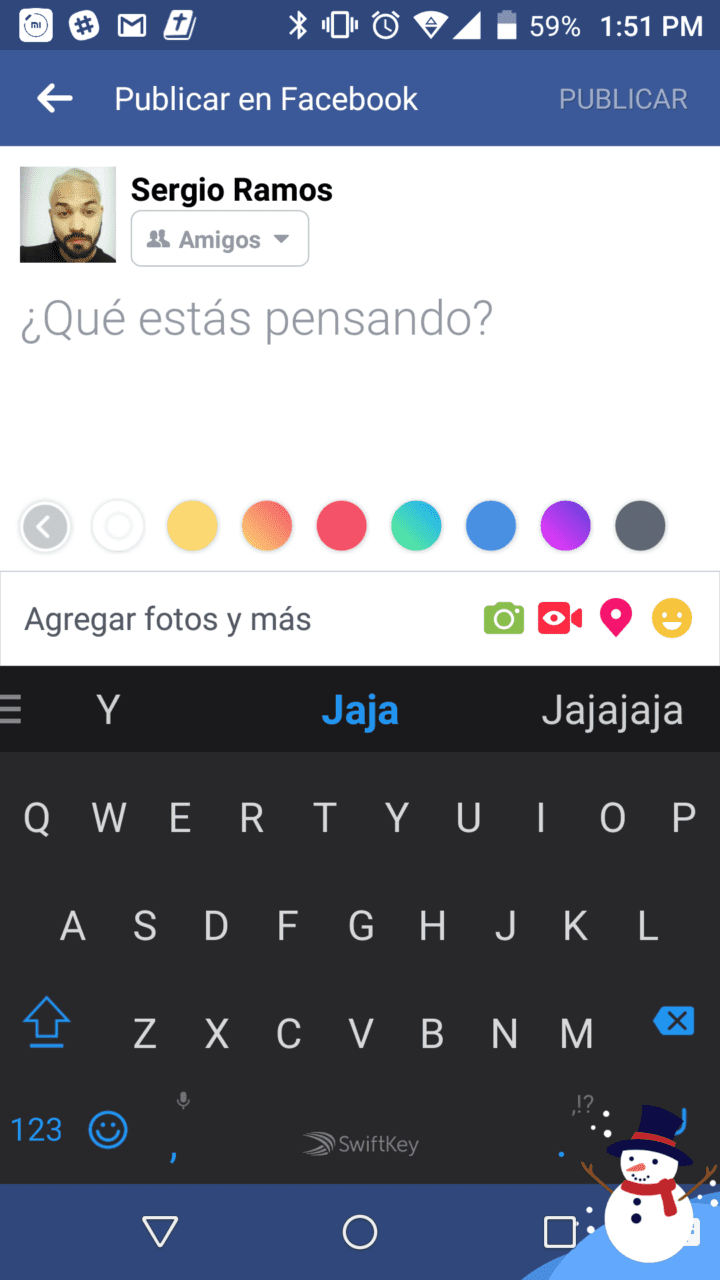 Para publicar un mensaje de este tipo, los usuarios deberán contar en primer lugar con la más reciente versión de Facebook para Android, e ingresar a escribir una publicación, donde inmediatamente podrán observar unos círculos de colores para elegir el lienzo sobre el cual irá el texto.